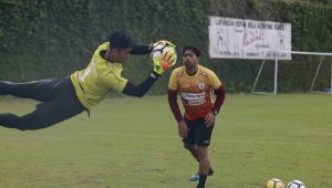 Tim Persipura dalam suatu sesi latihan Kiper Persipura saat menjalani latihan/istimewa Pelatih Persipura Jayapura, Jacksen Tiago. persipura ujicoba Stadion Klabat Manado/Wikipedia
